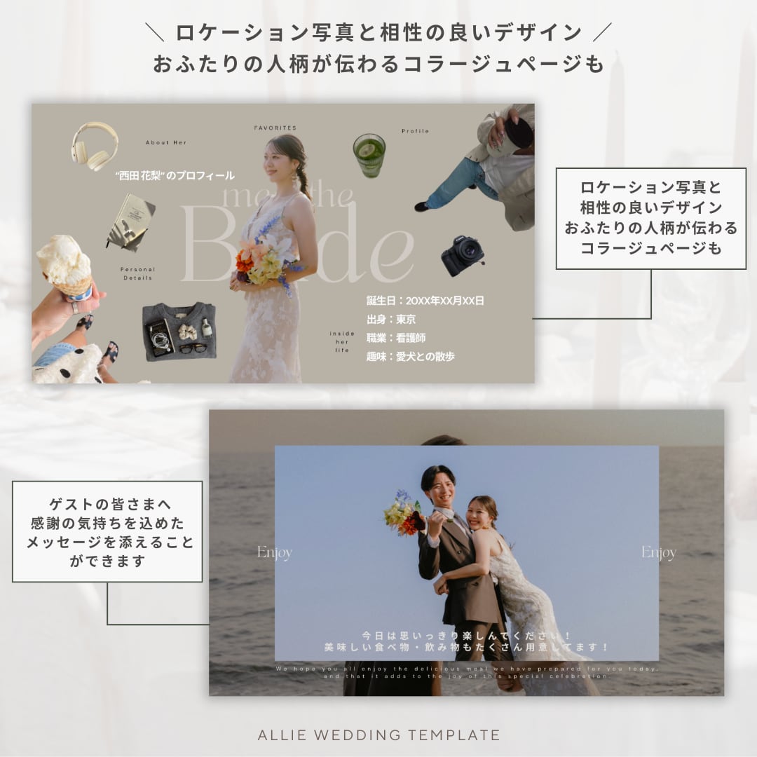 コラージュ風のプロフィール紹介が特徴のデザインです。