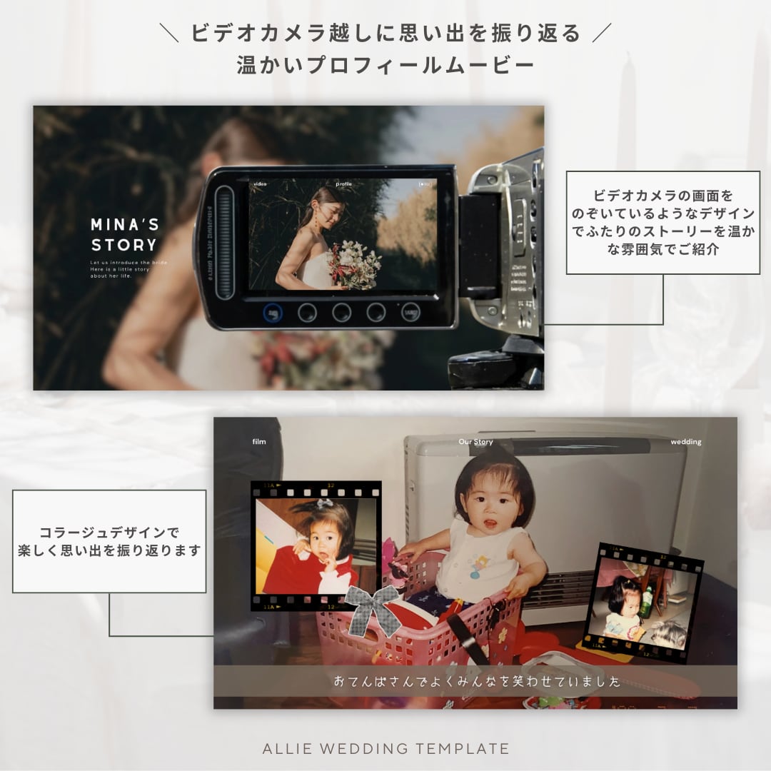 ビデオカメラ越しに思い出を振り返るプロフィールムービー